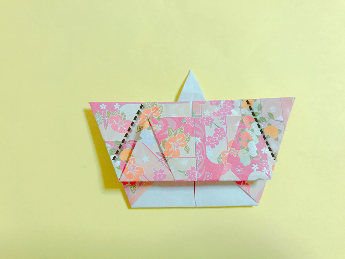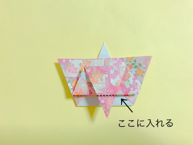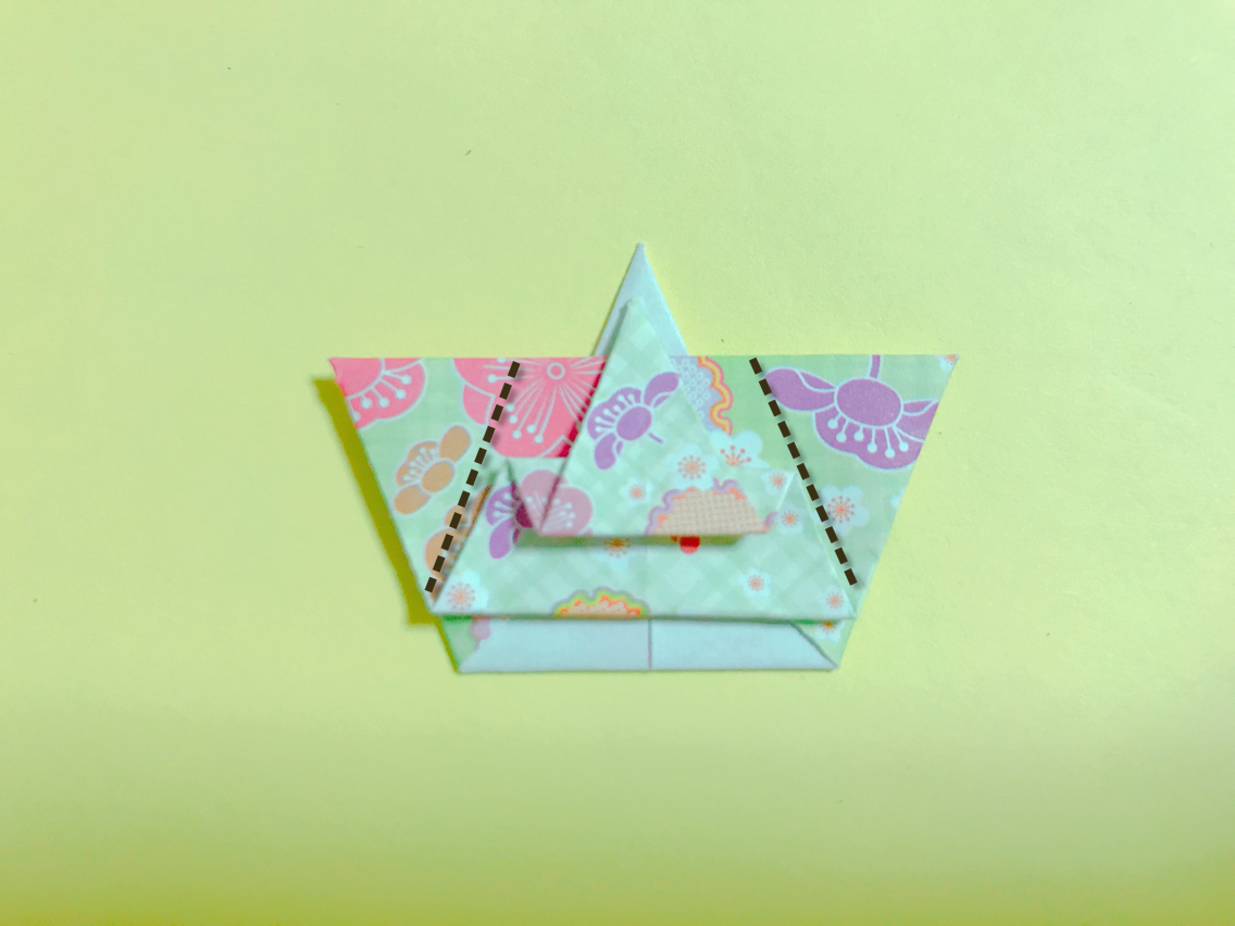 ①男雛の⑧まで折ったら、点線で折って中に入れます。