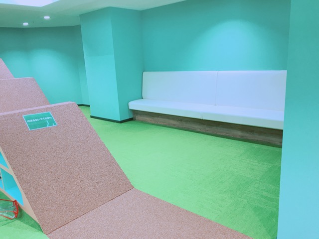 人工芝が気持ち良くて意外と落ち着く空間でした。