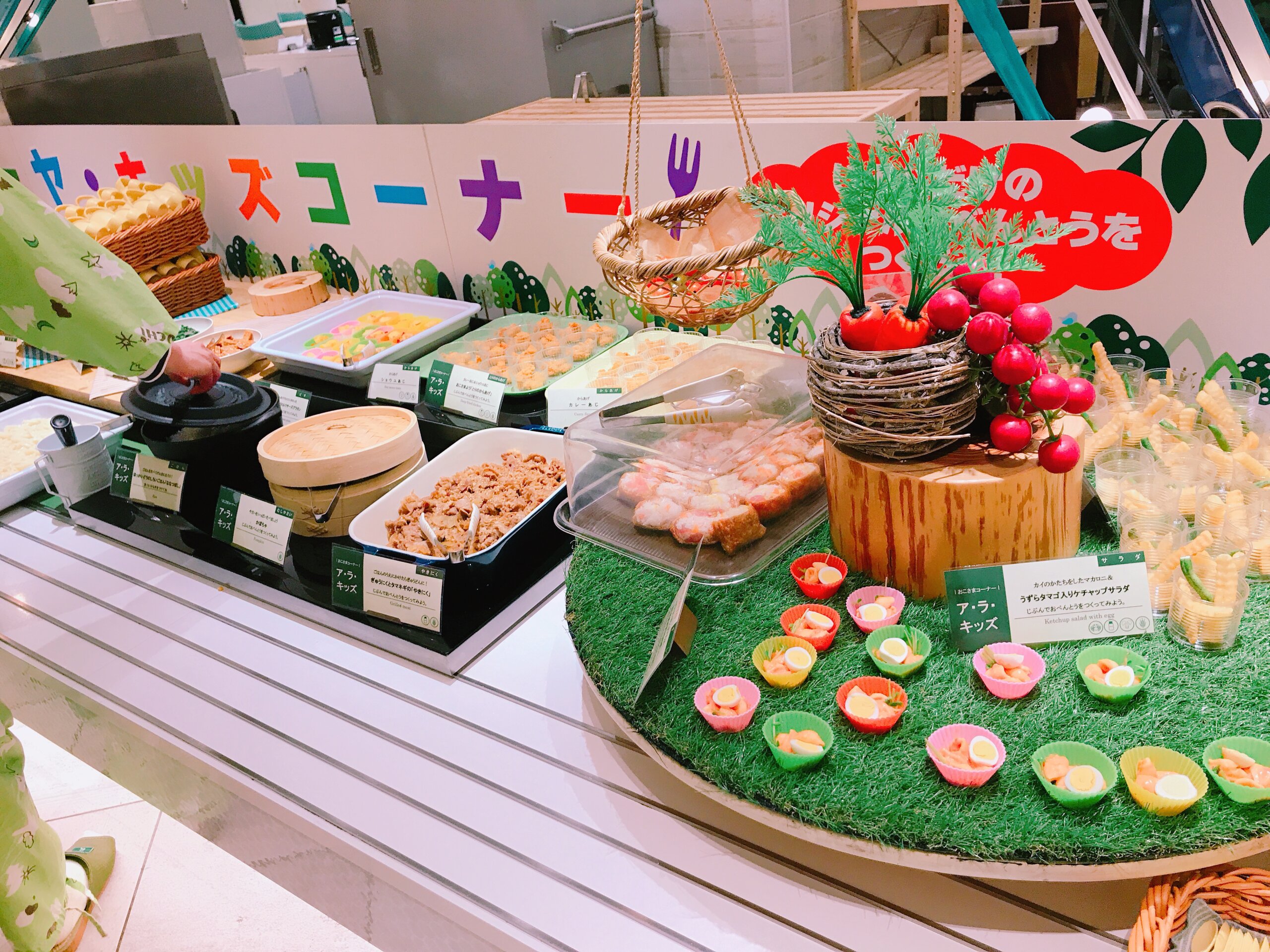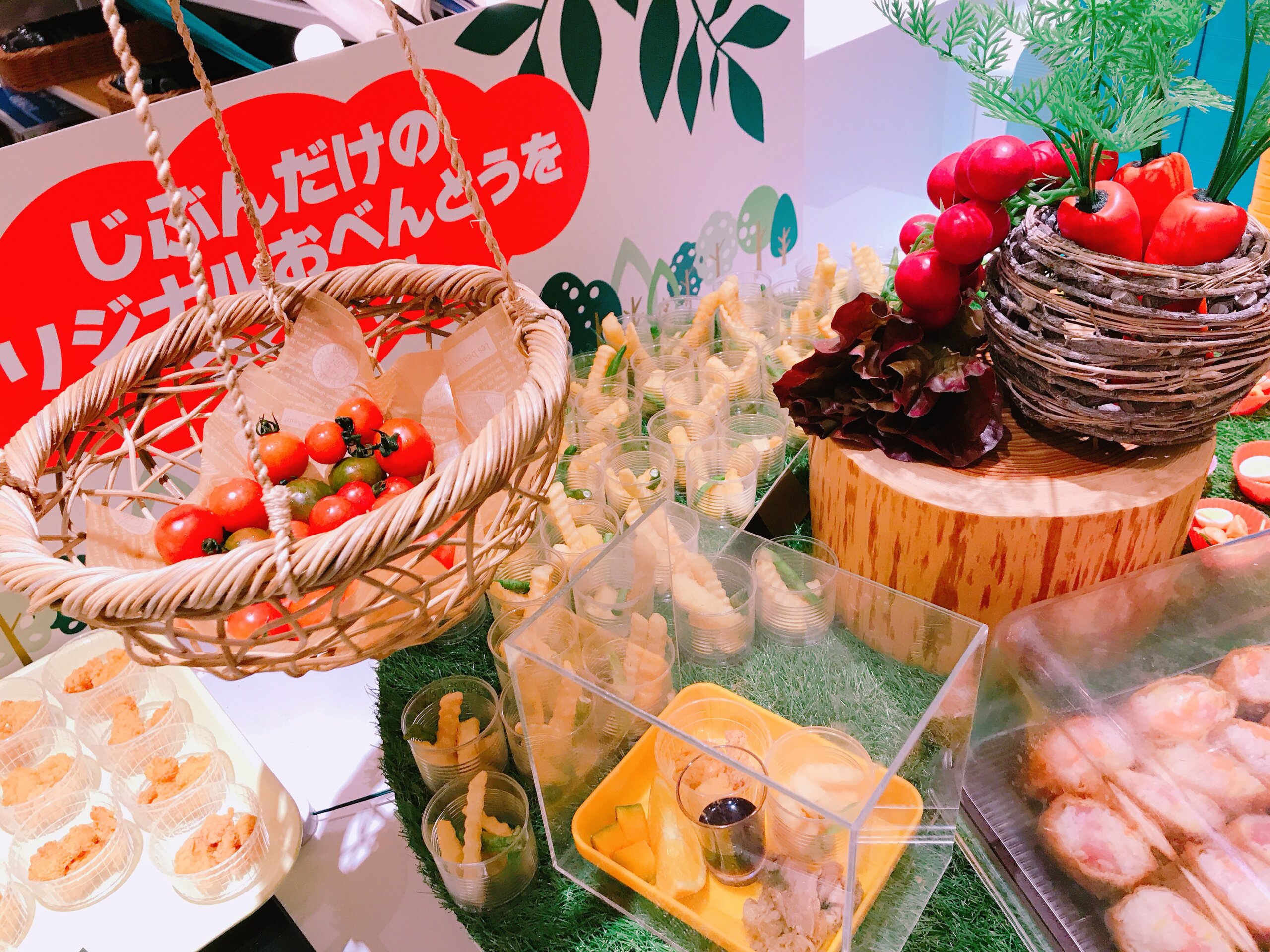 子供向けのハンバーグやふりかけのおにぎりなどの料理を好きなようにお弁当に詰めることができるようになっています。