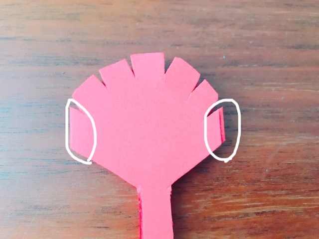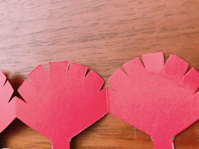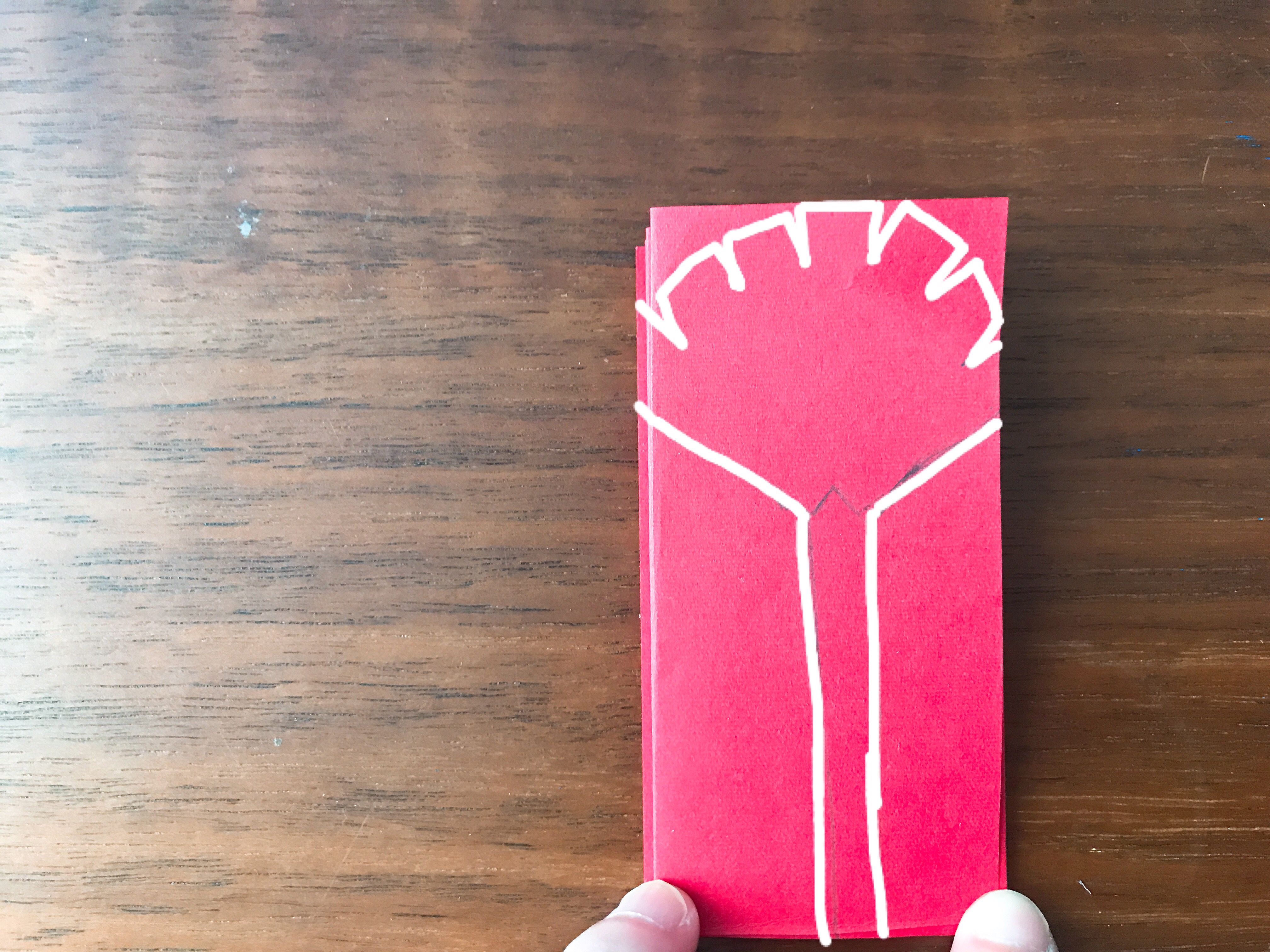 蛇腹におったら、白い線のようにカーネーションの形の下絵を書いて切り取ります。