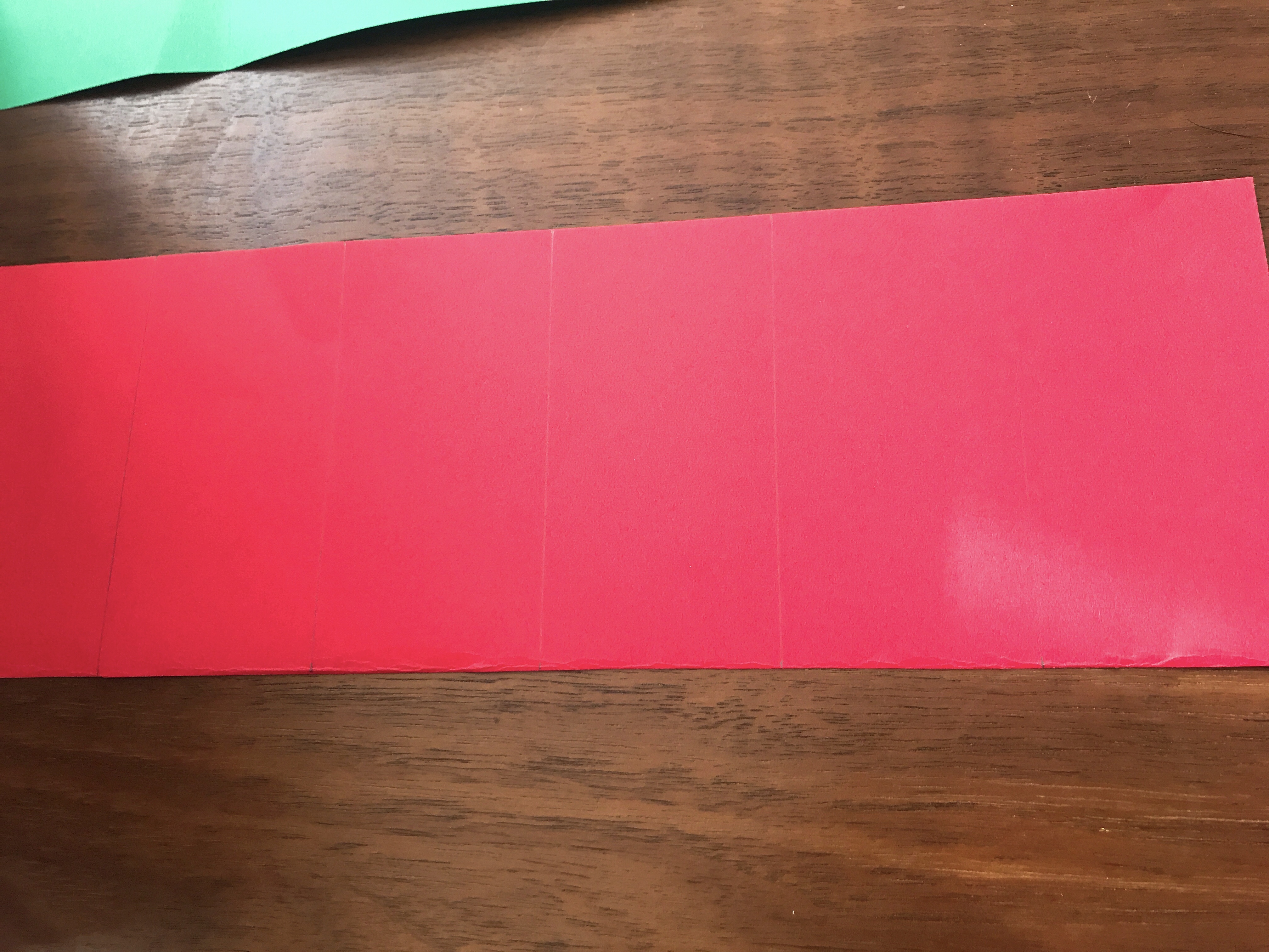 赤い画用紙を5㎝の幅に線を引いて蛇腹に折ります